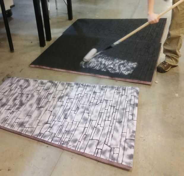 En las secciones de pared completo no había manera que iba a mano pintura cada piedra. Me enorgullezco de mi trabajo pero a veces tienes que trabajar más inteligente, no más.