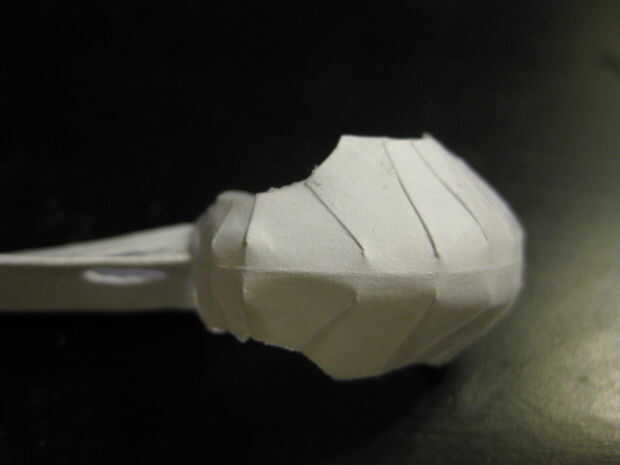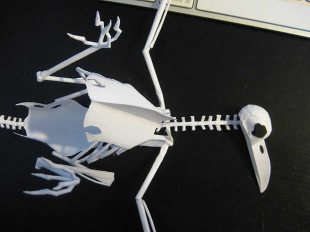 El pico fue laminado como los otros pedacitos planos, la mandíbula extiende atrás y se divide en dos. Pasé mucho tiempo tratando de hacer una calavera decente. Subió con un número de iteraciones diferentes pero esta fue la más limpia. A pesar de todo, el primer intento resultó en un cráneo que era demasiado pequeño. Se puede ver en comparación con el esqueleto en la última foto.