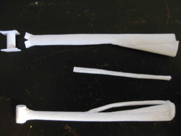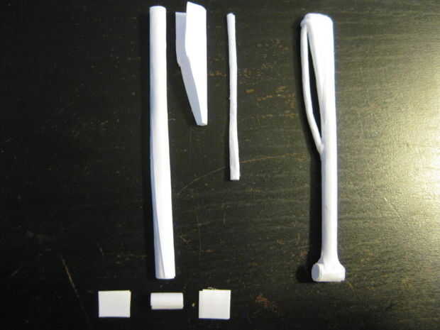 Las patas de gallo tienen tres grandes huesos, el fémur, peroné y tarsometatarsus (véase cuadro 3). El peroné tiene un montón de trocitos, hacer como recargado o llano como usted tiene gusto. Los dedos del pie que hizo ir en uno de los extremos de la tarsometatarsus, puede que necesite cortar los extremos en un ángulo para que encajen bien. Jam todo con pegamento y ajustar su posición una vez que el pegamento es suficientemente pegajoso para sostenerlas.