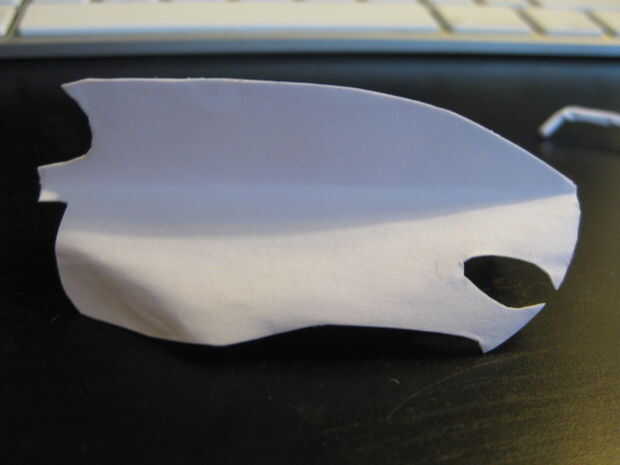 Hice mío un poco demasiado grande, en retrospectiva, que me hubiera gustado mejor tamaño para la misma longitud que el sinsacro. Fue hecha por laminado de 3 capas de papel con una protrusión importante de la línea media y entonces sólo sosteniéndolo en su lugar durante un minuto mientras se secaba. Después de que esté completamente seca, corte la forma apropiada