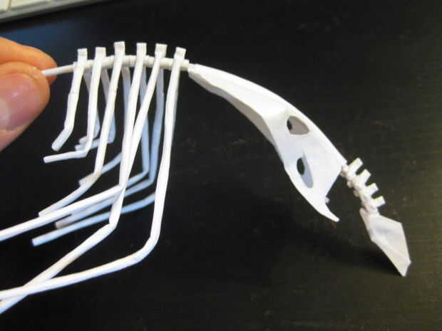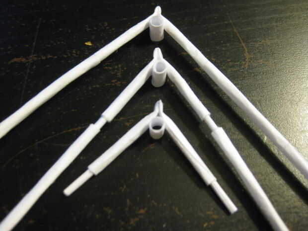 Hay seis costillas, así que seis vértebras más. Porque los tubos de costilla deben ser significativamente largo (entre 8-30cm) y largos tubos son difíciles de hacer de un diámetro constante y pequeño, había hecho en secciones pequeñas (5cm) y se unió a ellos con pequeños tubos como se aprecia en la primera foto.