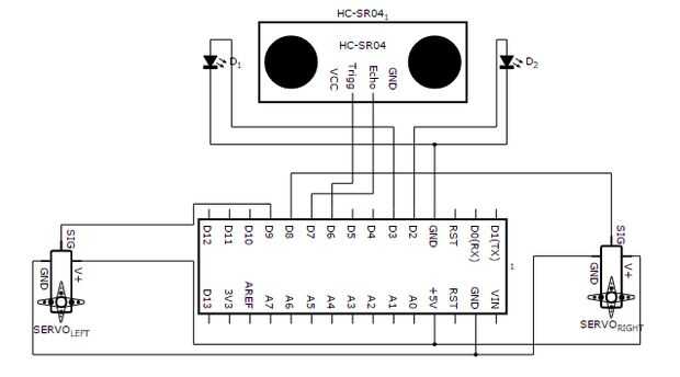 Luego fijar los dos LED rojos junto a la sonda y conecte todo a Arduino siguiendo el esquema adjunto.
