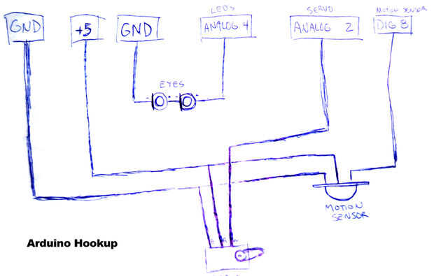 Para Halloween hice una calavera parlante circule con un movimiento de la mandíbula y los ojos animados que reacciona a los golpes de la puerta. Surgió de mi interés en el microcontrolador de Arduino.Básicamente consiguió una placa Arduino y escribí