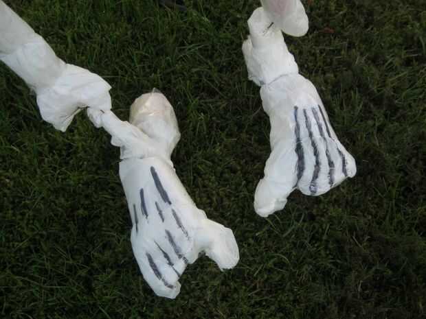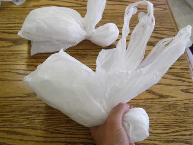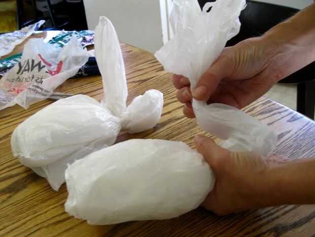 Recoger la bolsa detrás del rectángulo relleno y doblar para que algunos se quede detrás de la zona se reunieron. Esto se convertirá en el hueso del talón. Doblar sobre sí mismo y la parte que va hacia arriba (las manijas de la bolsa) se convierte en el hueso del tobillo.