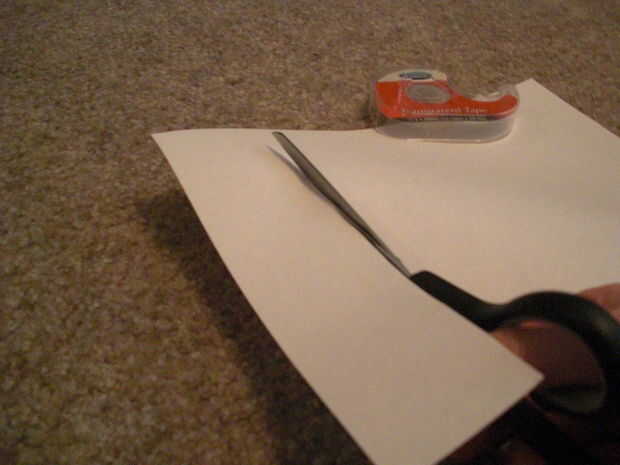Corte una tira a lo largo de su papel de 3 pulgadas de ancho. Forma cónica ligeramente hacia el final. Esto facilita su trabajo más adelante.