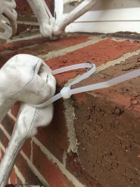 Tenga en cuenta que en algunos casos hice el accesorio en la muñeca o la rodilla. Si usted hace esto, asegúrese de que el zip atar lazos alrededor de la parte más pequeña de la articulación. No creo que deban ceñir la amarra demasiado, simplemente haz apretado para que no se mueva el esqueleto, incluso en viento.