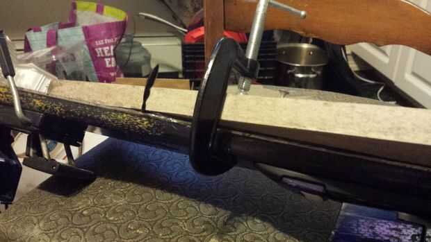 Todo en epoxy capa otra vez. Tuve que sacar el enlace para hacer las cosas bien. Lo suficiente como para aplastar pero no lo suficiente para pervertir su caída.