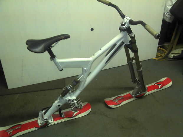 Terminar para arriba con las barras de aumento más alta usted puede encontrar para compensar la altura baja de la moto Ski en comparación con una bicicleta convencional (los montes deben ser mucho más bajos que los ejes de una rueda MTB de la Convención).