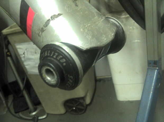 La parte inferior (ahora en la parte superior) también tuvo un lugar plano conveniente que me permitió fácilmente posición/asegure el segundo choque montaje (también rescatado de los chicos MTB).