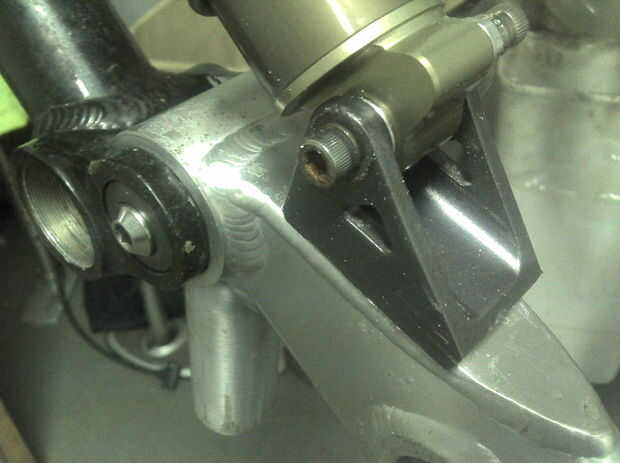 Aquí está un primer plano del pivote principal y montaje del amortiguador trasero (pre accesorio)