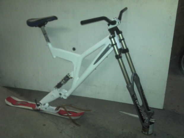 Esta es también una oportunidad para comprobar que su elegido esquí (ski-tablas para mí esta vez, 85cm de largo) ajusta la rueda base de la moto.