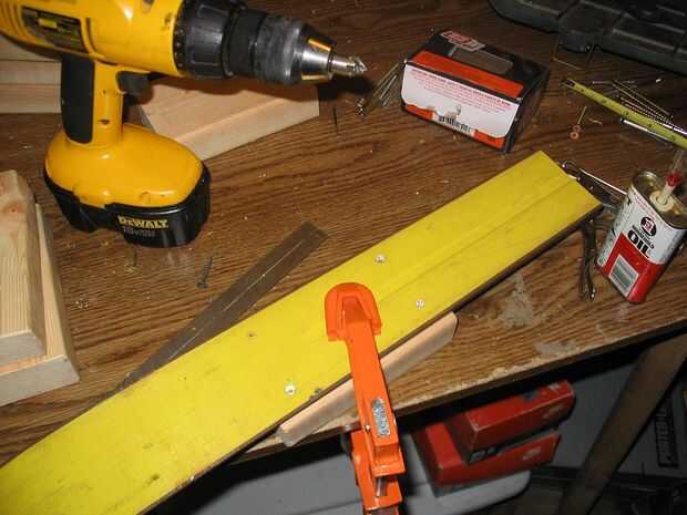Coloque la madera buena y recta en la estación de esquí y lo de la abrazadera hacia abajo. Extienda y taladre los orificios a través de los esquís en la madera. Ahora salir de su mano avellanadora y avellane los agujeros! Pruebe la colocación de un tornillo de vez en cuando hasta llegar a la cabeza justo debajo de la superficie de las pistas de esquí. Use un cuchillo para recortar el exceso plástico derretido en los bordes. Para este paso, he usado tornillos estándar de 1.25".