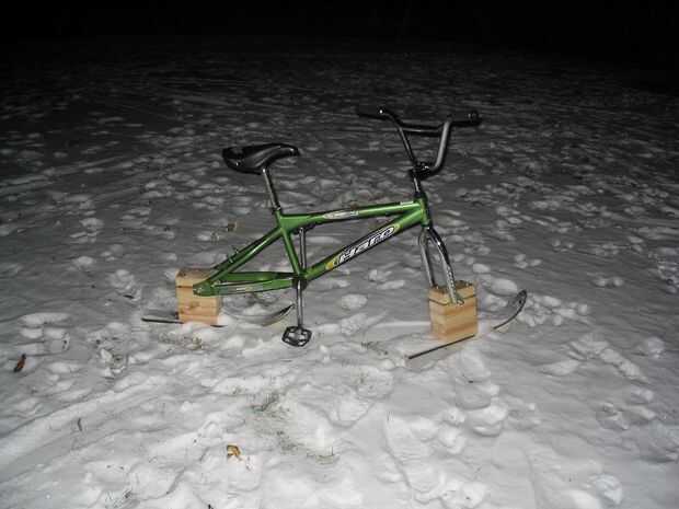 Puedo tratar de reemplazar el juego de bielas con algún tipo de estriberas con el pedalier. Su lo que están haciendo motos de esquí comerciales y probablemente sería más fácil poner la bici a lo largo o salto en después de un comienzo de ejecución. Los grandes pedales y bielas simplemente te dejan a veces.