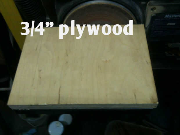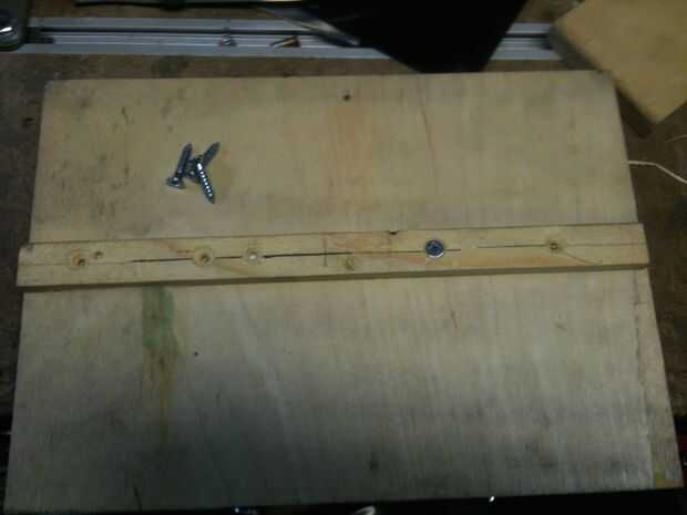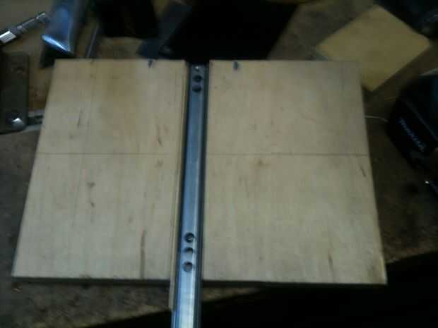La base (madera contrachapada ¾") con el cursor dadoed en él y la pieza rectangular de placa de acero de 16GA a conectarse el regulador.
