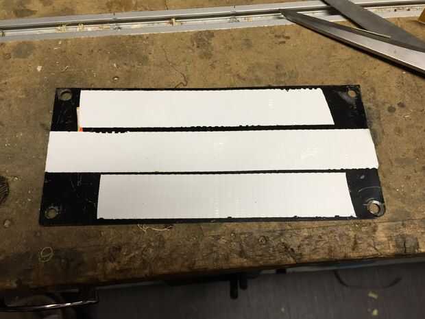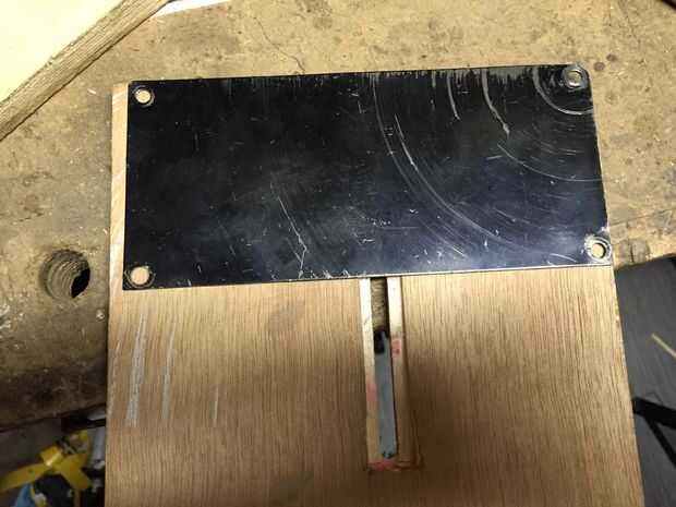 Quité la placa, de la barra deslizante y aplica cinta de doble cara para sujetar la placa de 3/8 en parte superior de madera contrachapada.