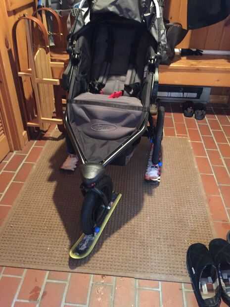 Ahora que empujó a uno de los pasadores de goma de lona a través del orificio lo coloca a través de los rayos alrededor de la llanta y sobre la bola para asegurarlo. Hacer esto para todas las 6 guías y voilá, listo. También encontré que bloqueo la rueda trasera es la manera de ir, acaba de poner el freno... Los rieles se pueden almacenar en la bolsa de corredores hasta que está en la nieve y sólo los pop en.