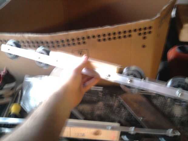 También si se construye como la mía, tuve una 1 "x 1" x 8' (puede haber sido 1.5 x 1.5 que puedo estar mintiendo) pieza como chatarra que encontré. Conectarse el estribo y es la mediana entre él y los carriles de patín. Diseño simple es mejor...