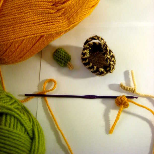 Es hecha con la técnica de amigurumi de hilado de acrílico y rellenas de polifibra de relleno. Tiene ojos de seguridad de plástico y sus brazos están conectados por lo que puede doblar. Usé de 3,5 mm y 3mm ganchos.