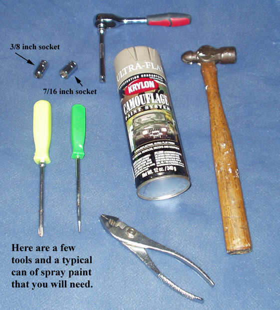 Usted necesitará algunas herramientas estándar y por lo menos una lata de pintura de su elección. Opté por usar camuflaje base plana esmalte porque se va a atornillar a un hermoso pino en mi patio trasero y quería que mimetizarse con su entorno y ser más visibles sólo para las aves. El interior del plato puede ser cubierto con pintura de la piscina para reducir la acumulación de algas, pero esto es opcional. Sólo necesita ser una pintura no tóxica. El plato deberá limpiarse regularmente en cualquier caso.