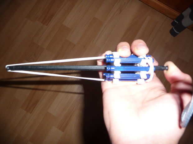 este es mi primer arma de KVG :)Es una pistola pequeña(Estadísticas):Cómoda manijaverdadero gatillo (de Córcega)5 redondos compartimientopequeñobarras de brotes verdesrango: 25-30 pies (con más goma bandas podrían tirar más lejos)Permite así obtener