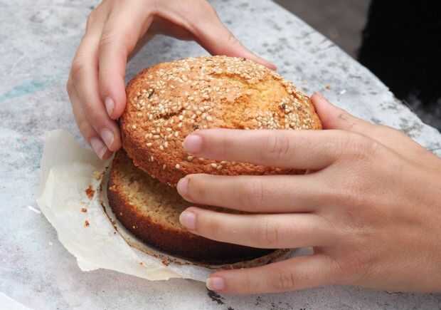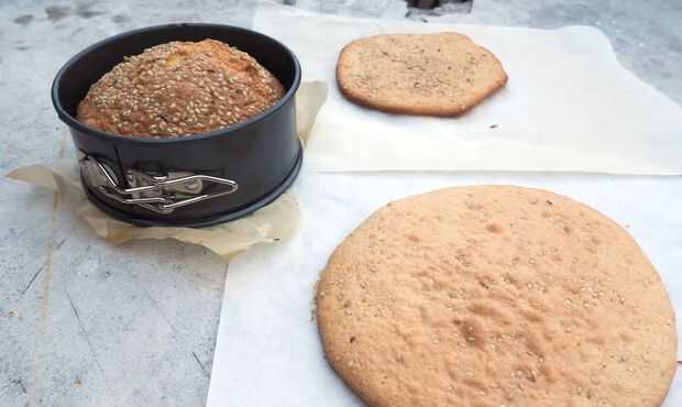 - Cuando lo ha hecho dejar enfriar un rato. Pasar un cuchillo entre la torta y la forma si no está ya suelta y abra su springform. Tada! Sólo un corte por la mitad horizontalmente y el bollo está listo, se parece a un pan, pero es torta!