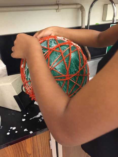 Difundir el hilado cubierto de pegamento sobre el globo, que se entrecruzan sobre sí mismo y deja el balón a sentarse durante dos días