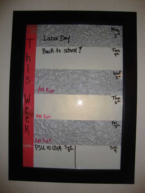 con una cortina vieja y pieza de vidrio (más algunas decoraciones), puede realizar un Consejo bastante útil borrar seco, que hice en un calendario. Originalmente tuvo la idea de esta página (http://lifehacker.com/5873452), pero han modificado el dise