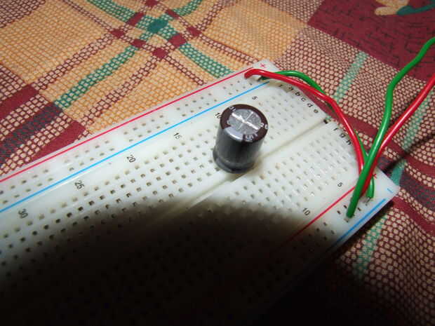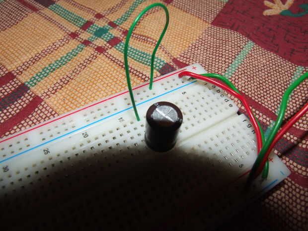 • Coloque la tapa de 220uF dondequiera en protoboard.
