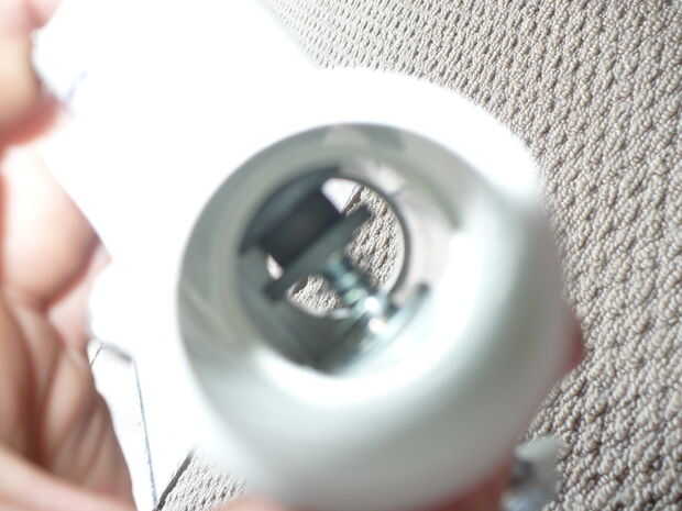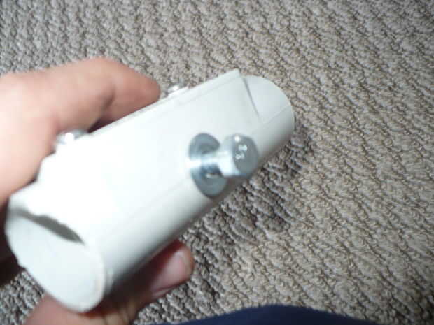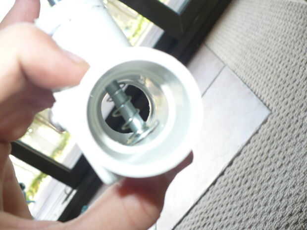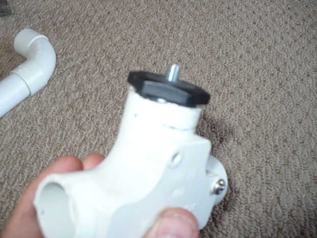 Lugar de perno y la arandela por la parte inferior de la articulación T voltee y deslice en el resorte y las arandelas. Necesitaba poner unas arandelas como el hilo no pasó todo el camino. Atornille la tuerca hasta que usted sienta cierta tensión.
