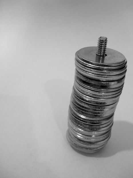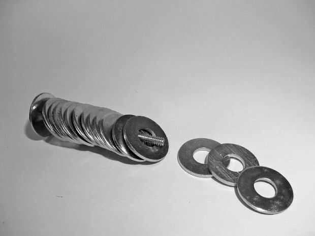 Uno de sus arandelas fender para la base seguido de 30 arandelas de corte de media pulgada. Conjunto restante arandela guardabarros en la parte superior.