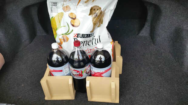 ¿Qué son? Bueno, estos son cuatro elementos de esquina que se pueden colocar en bolsas de supermercado, botellas de pop, cajas, casi cualquier cosa. Estos estabilizadores evitará que tus bolsas y botellas rodando alrededor en todos los rincones de su tronco o la parte posterior de su SUV o incluso su cama de metal en un camión. Estos no estabilizarán pacas de heno o 5 galones cubetas de pintura---pero se podría construir algo para apoyar ese tipo de cosas grandes; probablemente sería más alto, más fuerte, etc..
