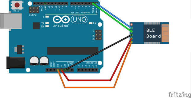 Después de hacer la conexión, verá un LED verde parpadeante a BLE Junta (suponiendo que tu placa Arduino se enciende).