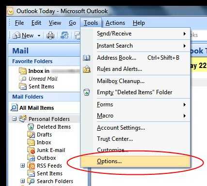 Establecer por defecto carpeta al iniciar Microsoft Outlook 2007 (2 / 6 paso)