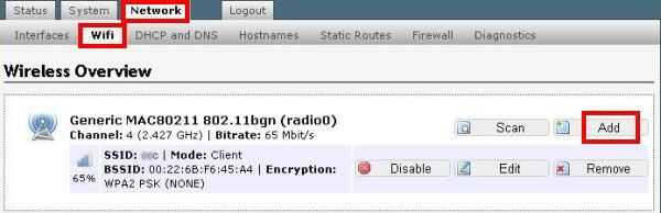Seleccione Network -> Wi-Fi y haga clic en el botón Agregar como se muestra.