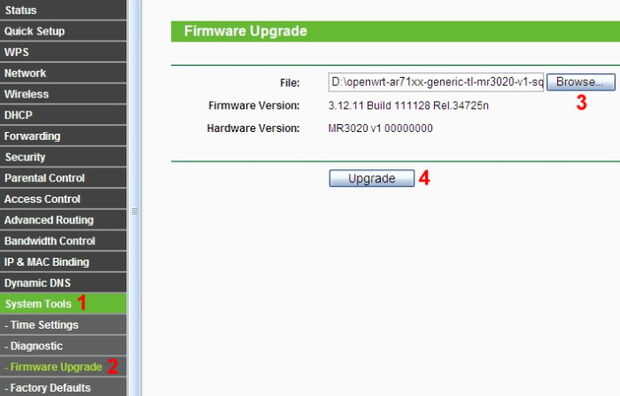 • Descargar el firmware OpenWRT para TP-Link TL-MR3020 al ordenador.