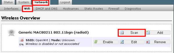 - Seleccione Network -> Wi-Fi y haga clic en el botón Scan .