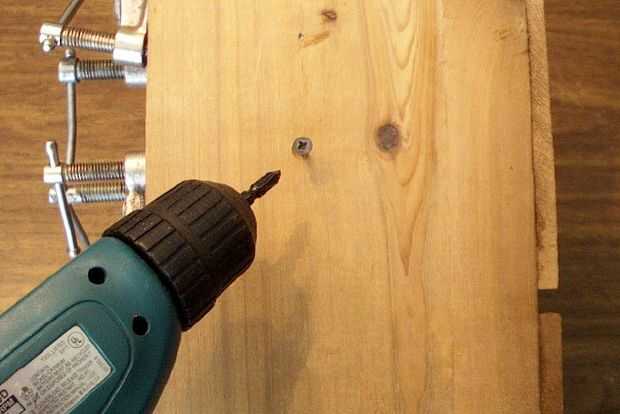 quería que la pared de pluma decorativa ganado muy seguro. Por lo tanto, perforados a través de la base en el post para un tornillo de drywall de 2 pulgadas. Usé un avellanado para que la cabeza no rayará la superficie en que descansa la guardería.