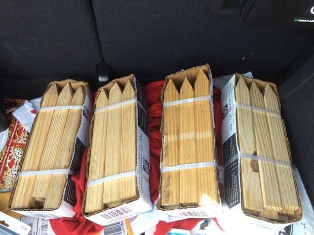 Las estacas de madera conforman nuestro marco de suspensión. Las apuestas se levantan sobre un espesor de media pulgada que es perfecto como queremos los discos a la pared en lugar de planas, que manera más.