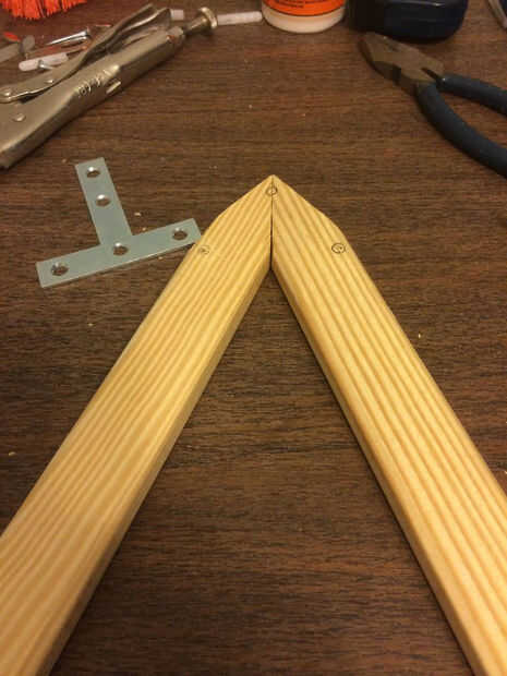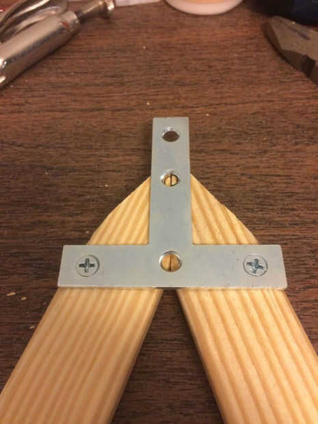 Alinee las estacas puntiagudas extremos juntos para formar un V al revés (para vampiro!). Ahora toma una placa de T y en el extremo puntiagudo de su V, alineando la parte inferior de la T por encima de los puntos de las estacas. Marque los agujeros para taladrar y perforar lejos! O puede omitir la perforación si eres una persona super fuerte destornillador, pero personalmente creo que hace más fácil y menos probable a partir de la madera.