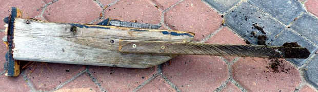 Por la participación, ángulo de corte un trozo más fino de la chatarra y garantizar que vayan en la tierra por probándolo. Luego atorníllelo en la parte posterior de la paleta de función (Foto 2).