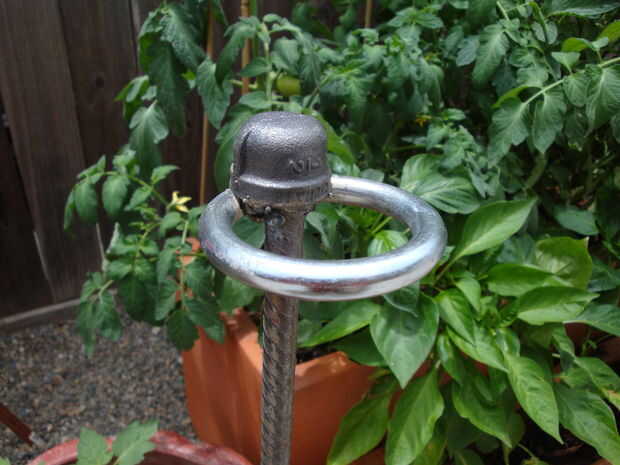 ACTUALIZACIÓN: he rediseñado la apuesta para grabar este año. Creo que son mejor que el viejo diseño de trabajo porque son más confiables. Tal vez es porque yo no soy el mejor soldador, pero algunas de las asas y las tapas han caído las viejas estacas. Mi nuevo método parece durará más tiempo sin problemas. Que he enumerado los nuevos materiales en la lista de materiales. Yo puedo soldar un bucle a la tuerca para sujetar la cuerda y trinquete las correas. Sería más fácil de utilizar el mosquetón. Usé una amoladora para más agudo al final de la varilla un poco a entrar en la tierra con menor resistencia. Tira de la tierra fue fácil. Usé una llave para encender la hoguera mientras tira. Las arandelas ayudan a dar extra agarre. Utilice Loctite en las roscas para evitar que el perno que viene hacia fuera (o soldar en su lugar).