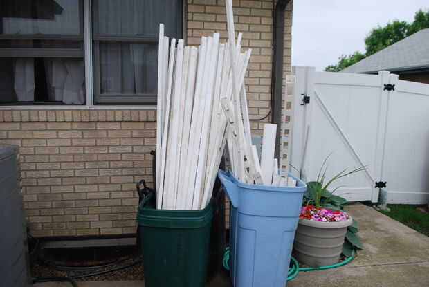 Conseguir sus manos en algunas vallas de vinilo. Mía encontré a través de una web de trueque y libre, pero he visto esgrima en ventas de garage y mercados de pulgas. Cercado de vinilo es muy resistente y durará mucho tiempo. Esta pic es la esgrima que tengo pendientes de finalizar mis proyectos. Estos listones son 1' 2' y 6 pies de largo.