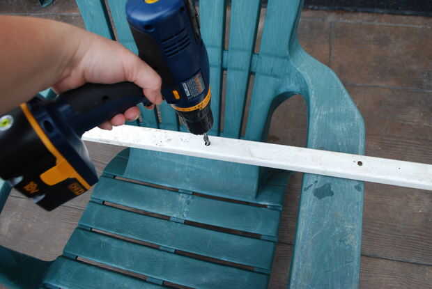 Perforar agujeros en las estacas en los puntos de medida de la marca. Si tienes una configuración de velocidad en el taladro, asegúrese de que utilizar un ajuste bajo. Si no tienes una velocidad baja, tenga cuidado... Si empujas demasiado con el taladro, puede romper el vinilo. Esto descubrí la manera dura.