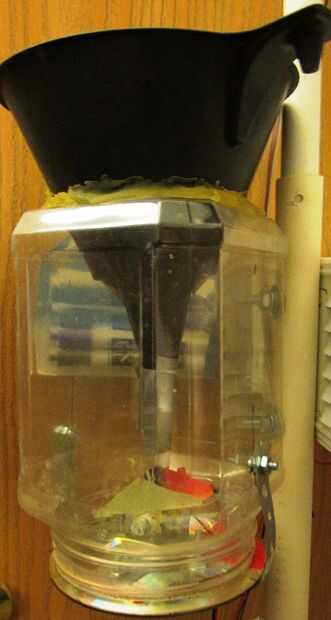 Pluviómetro: cambiar efecto hall a US1881. Tuve que reemplazar la base como la tapa de caja de anacardo se derrumbaba. Utilicé un disco de CD. Antes, había substituido el embudo como (creo) el fue dañado.