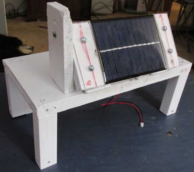 Gabinete: Hice una caja con algunas tapas del ventilador y la madera para evitar la luz directa del sol y la lluvia de la PCB y las baterías.