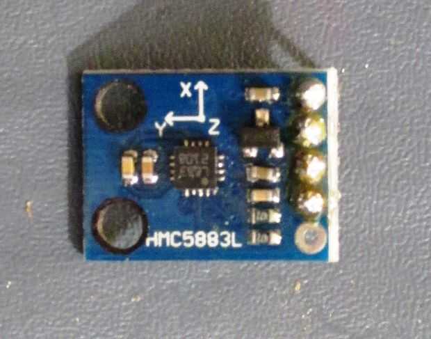 Decidí utilizar un magnetómetro HMC5883L. Mi teoría era que si se gira un imán por encima (o debajo) del magnetómetro, debe mostrar la dirección del imán y, por tanto, la dirección del viento.