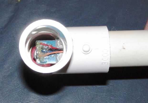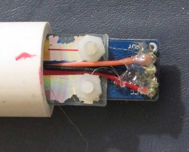 La primera foto es el magnetómetro HMC5883L. A continuación os adjunto una pieza de plástico que encaja dentro de un tubo de PVC de ½". Soldar algunos cables para el magnetómetro.