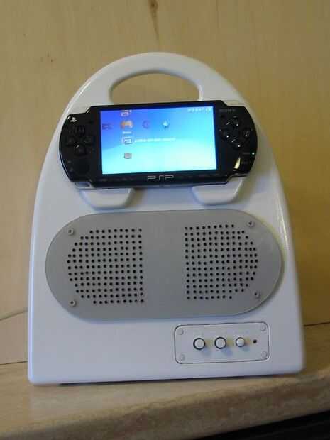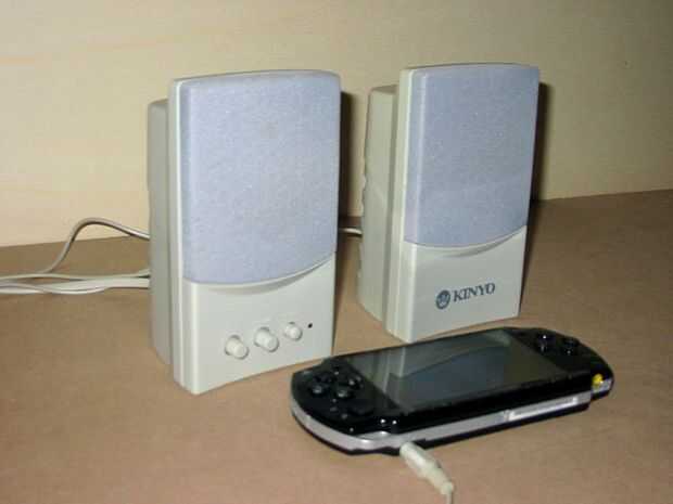 Por otro lado, la elección de las estaciones de PSP es pobres y fuertemente orientada hacia los jugadores. La mayoría de ellos son muy pequeña y un sonido que necesita un poco más amplificación que el mini altavoces (tercera imagen) son capaces de. Es por eso que decidió construir una estación de audio capaz de producir una calidad de sonido decente, transformando un par de altavoces amplificados en una pequeña estación de acoplamiento audio PSP. Por supuesto, la calidad del sonido dependerá fuertemente de los altavoces empleados en el proyecto.