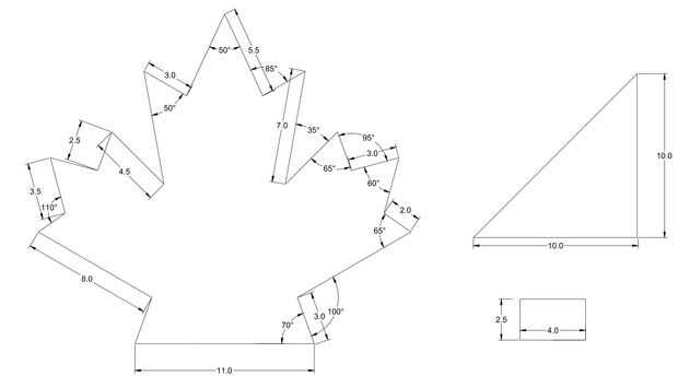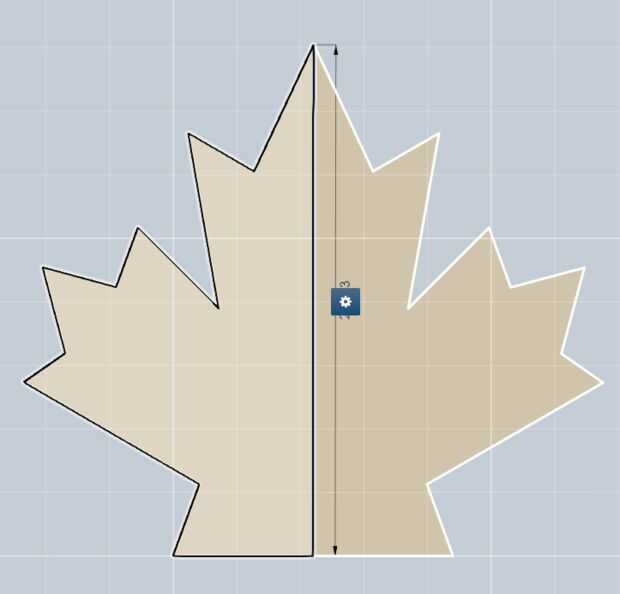 Volver a usar la polilínea, sacar la hoja de maple muy cuidadosamente usando el diagrama como guía para todas las longitudes de lado y ángulos. Como un atajo, sólo la mitad de la hoja dibujar. Después de sacar la mitad, espejo y crear la segunda mitad de la hoja utilizando el comando espejo yendo a patrón >> espejo. El resultado debe ser una hoja completa y simétrica.