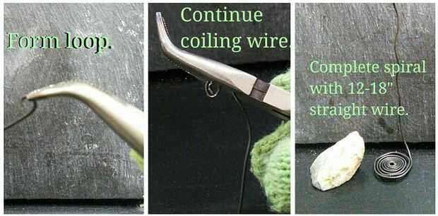 Para empezar, creará una espiral de alambre en espiral en el extremo del carrete de alambre. El tamaño de la espiral que necesita dependerá del tamaño y forma de la roca. Para su primera estación, hacer la espiral tan ancha como la anchura de su roca.